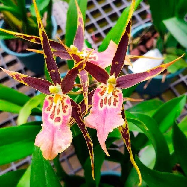 Com flores longas, finas e exuberantes, a Brassia ganhou o apelido de “orquídea aranha”. As sépalas e pétalas estreitas, muitas vezes salpicadas, lembram patas de aranha — um desenho tão convincente que, na natureza, vespas caçadoras de aranhas tentam atacar as flores e acabam realizando a polinização. Se você busca uma orquídea escultural, florífera e perfumada, a Brassia é uma excelente candidata para varandas claras e ambientes bem ventilados.