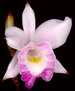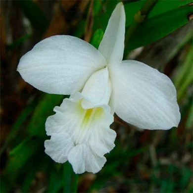 - Apresenta flores totalmente brancas, sem o labelo lilás característico.