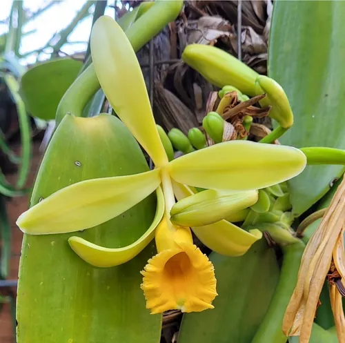 A orquídea baunilha precisa de clima quente e úmido, com boa luminosidade, mas protegida do sol direto.